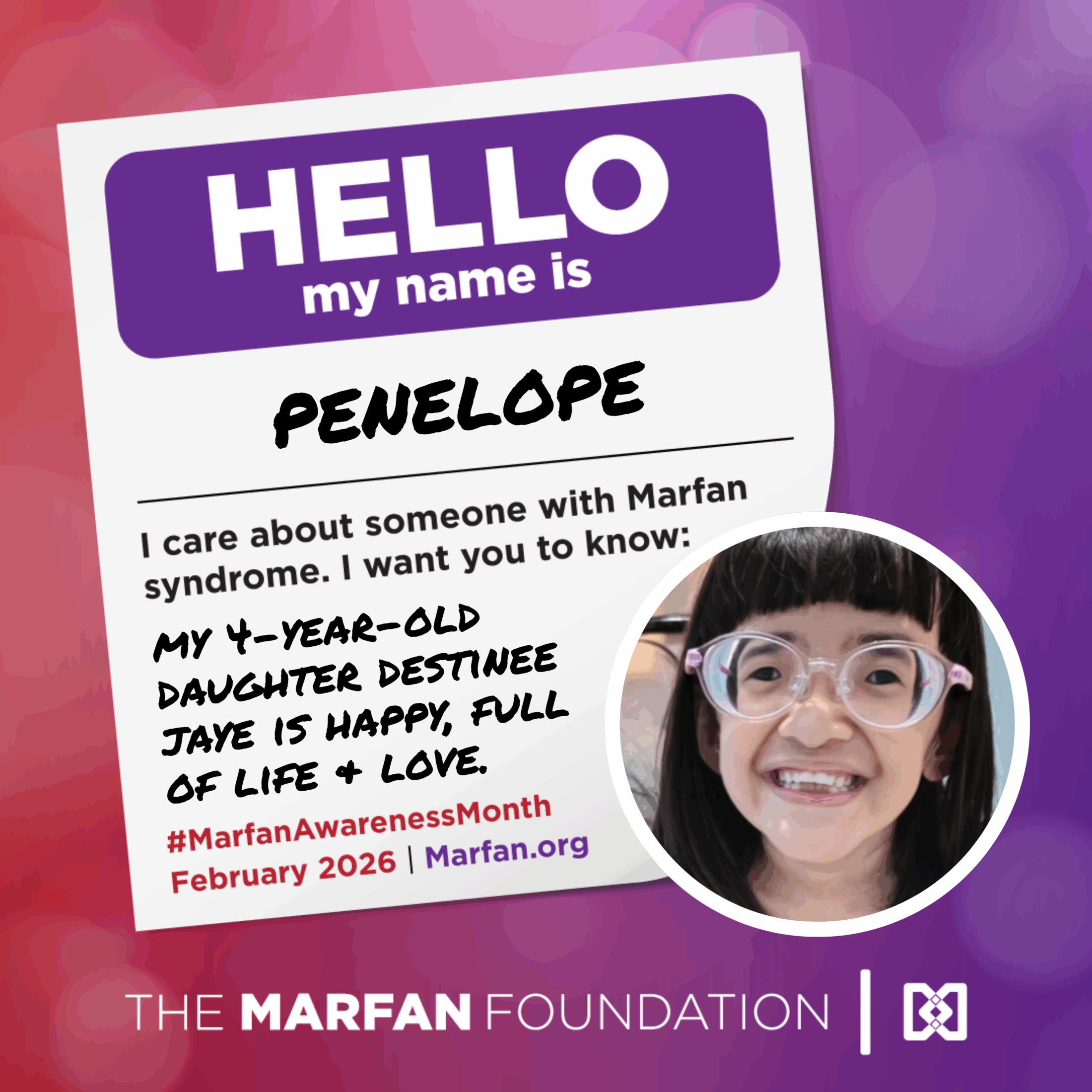 “My name is Penelope Robles, and I’m from the Philippines. This is the story of my 4-year-old daughter, Destinee Jaye, who was diagnosed with Marfan Syndrome when she was two months old.”